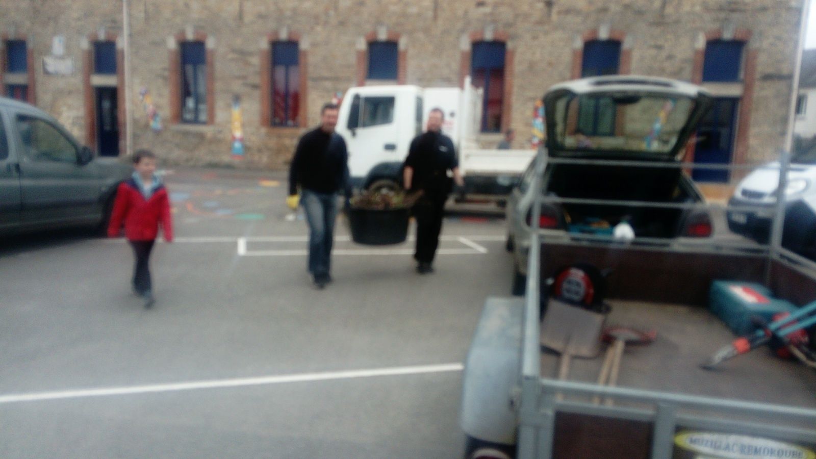 C'était impressionnant de voir notre cour d'école pleine de voitures, utilitaires, camionnettes et surtout de voir l'énergie déployée !