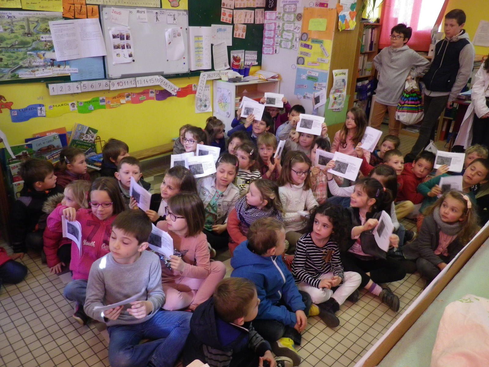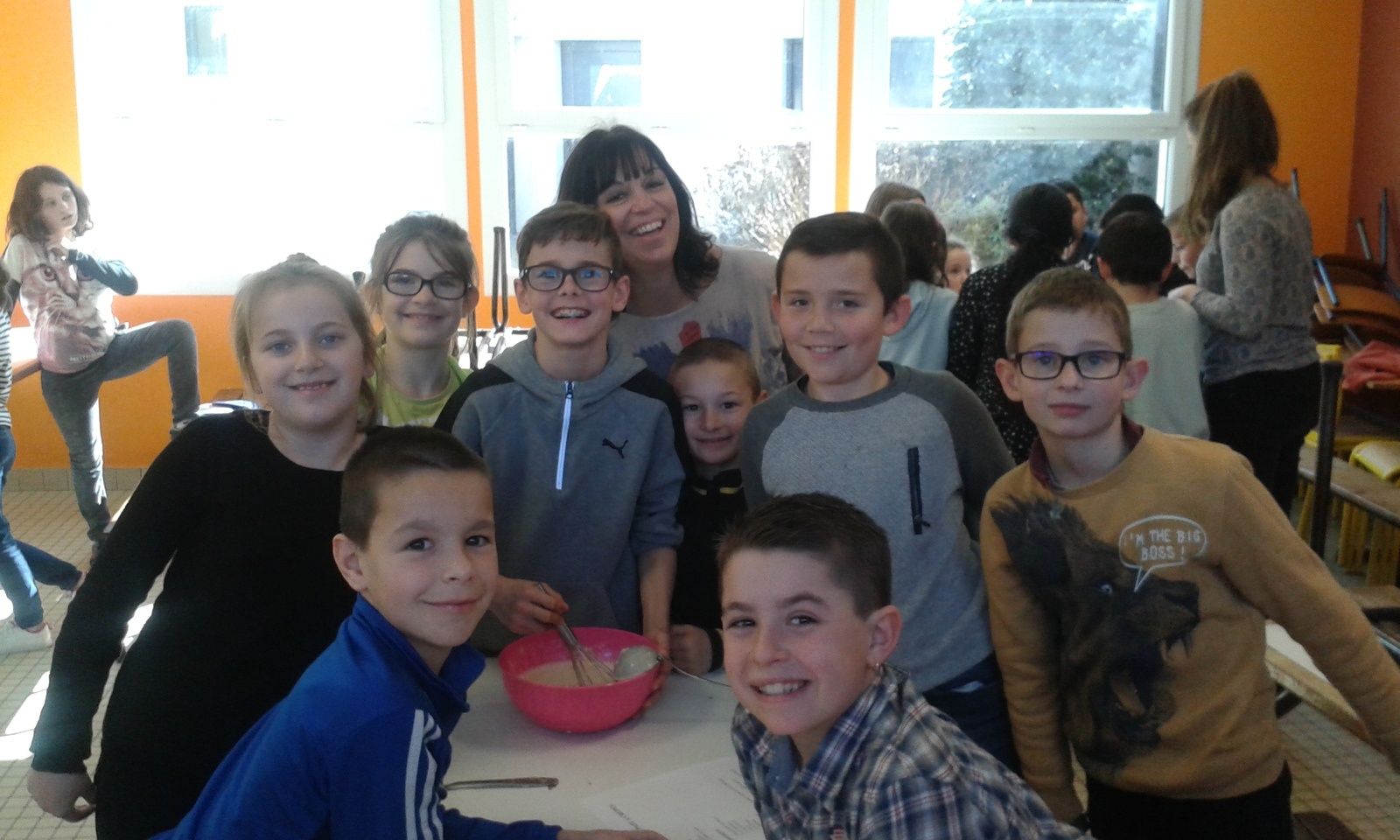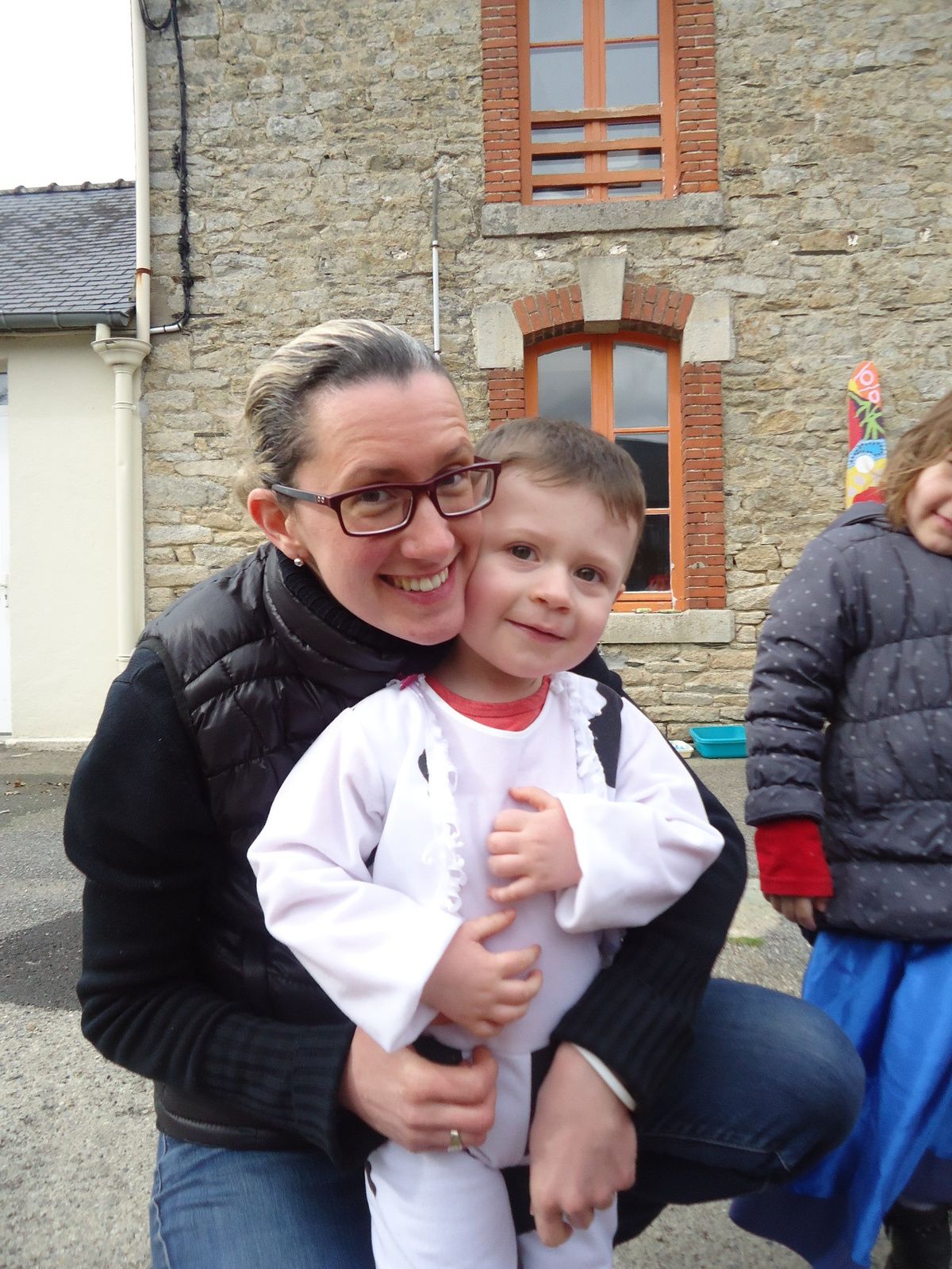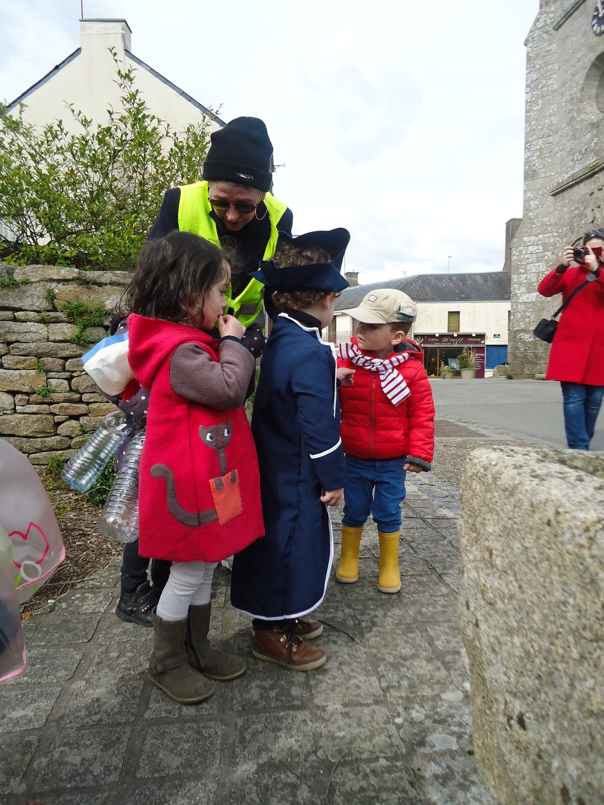 Nous avons défilé dans les rues de Malansac au son des instruments de musique. Nous nous sommes arrêtés au calvaire pour les photos puis nous sommes retournés à l'école où nous attendait un goûter offert par les associations de l'école.