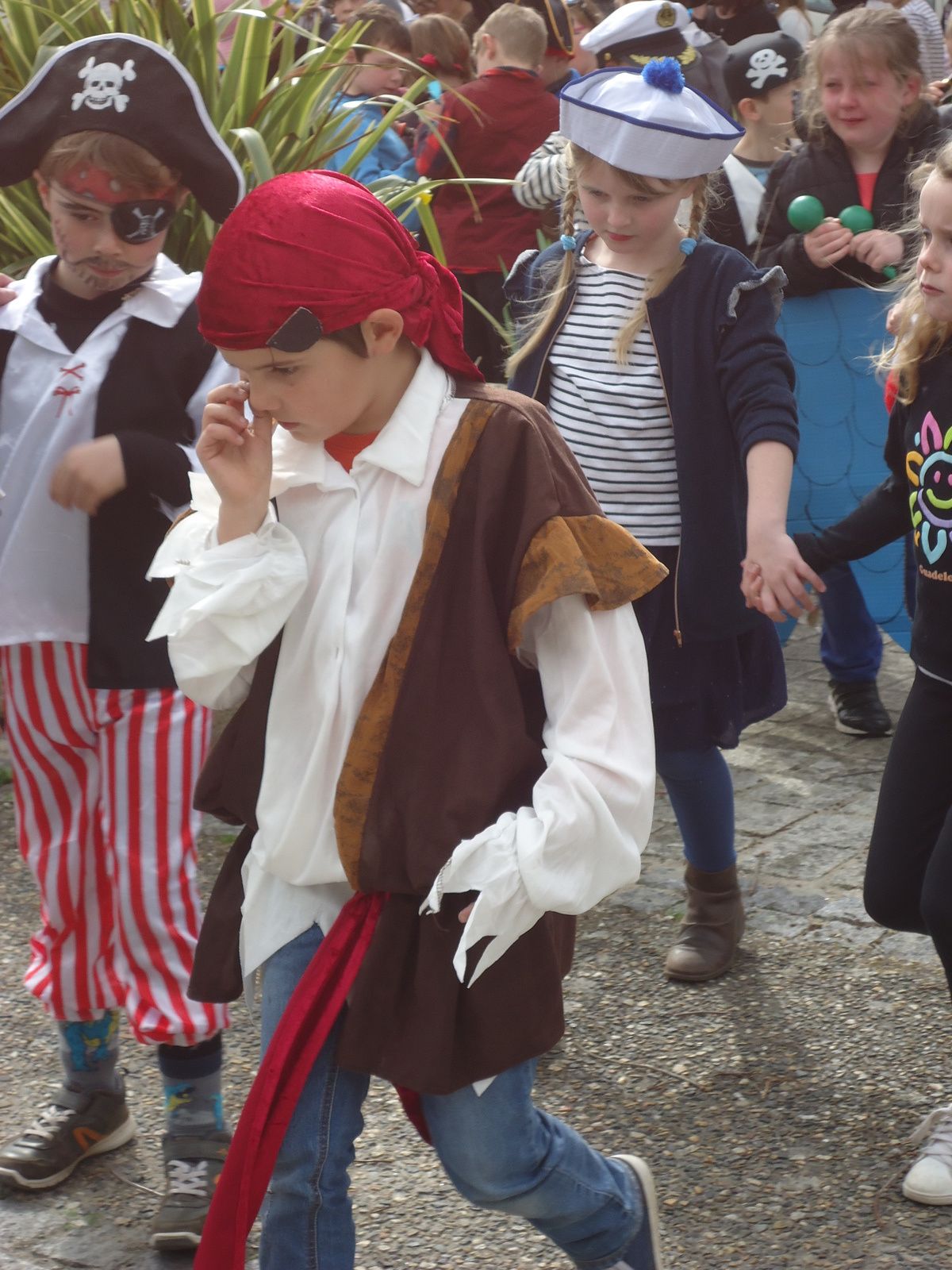 Cette année le thème était l'eau. Nous avons vu différents costumes: des sirènes, des surfeurs, des poissons, des pirates, des gouttes d'eau, des marins,...